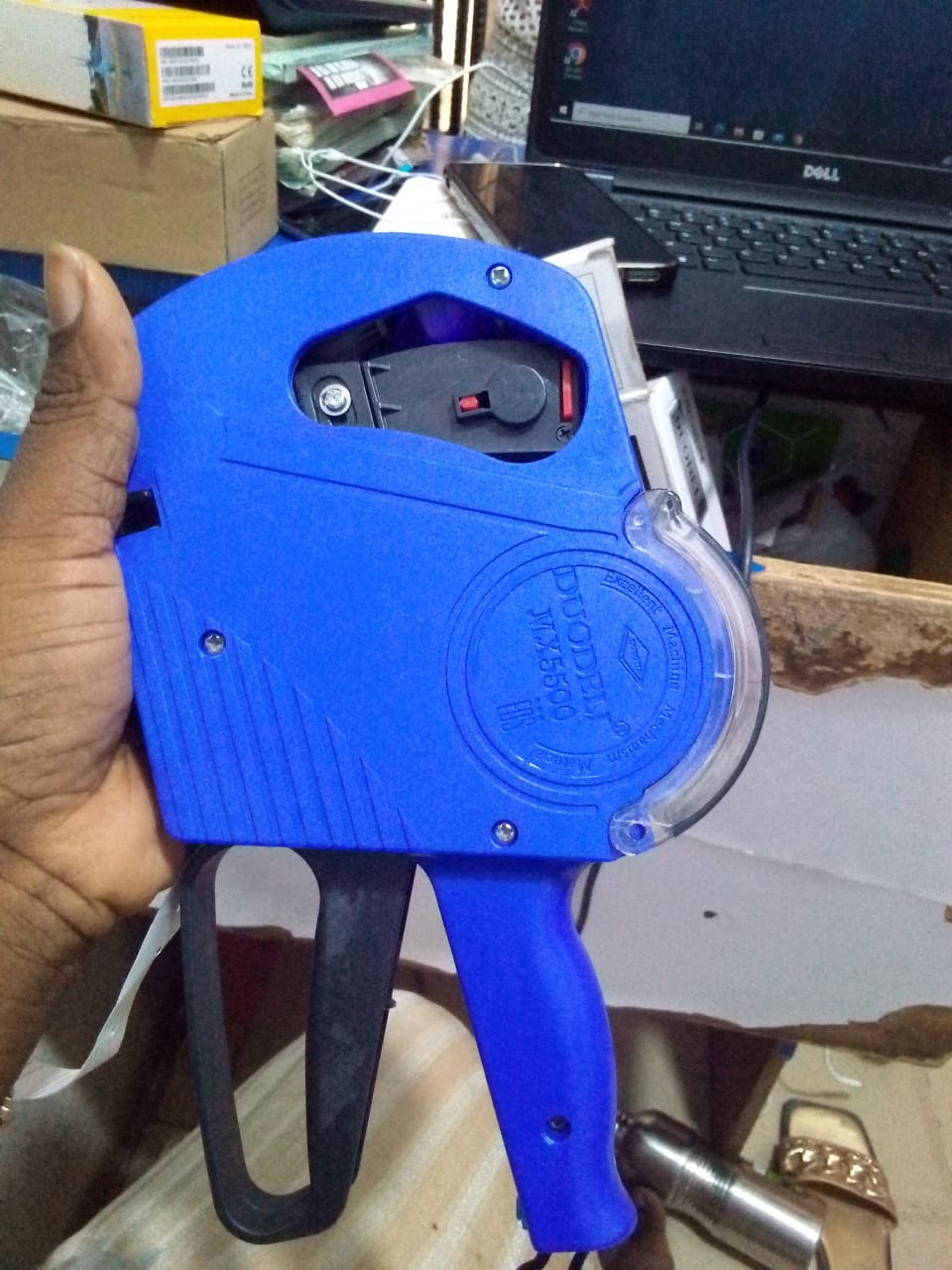 Price tag machince with label N25,000